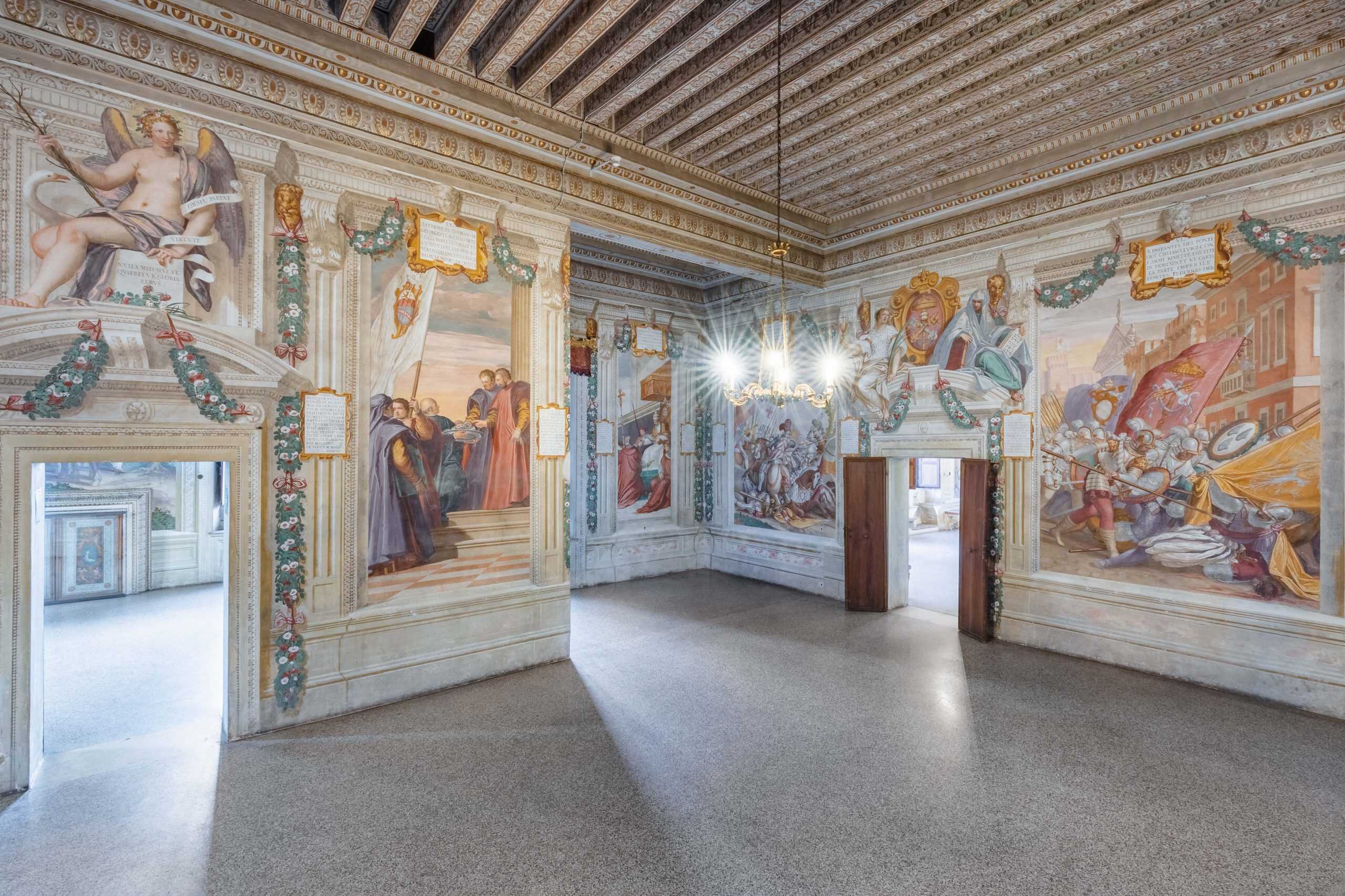 L’intero ciclo pittorico di Zelotti, tra i più importanti del Nord Italia, rappresenta la saga eroica della famiglia degli Obizzi.